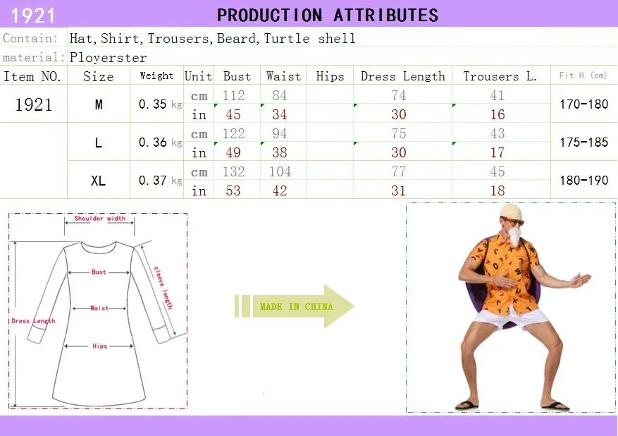 Model Number: Dragon Ball Master Roshi Cosplay Costumes