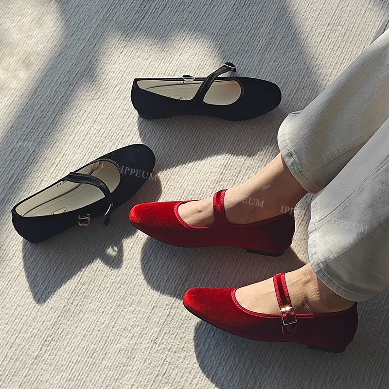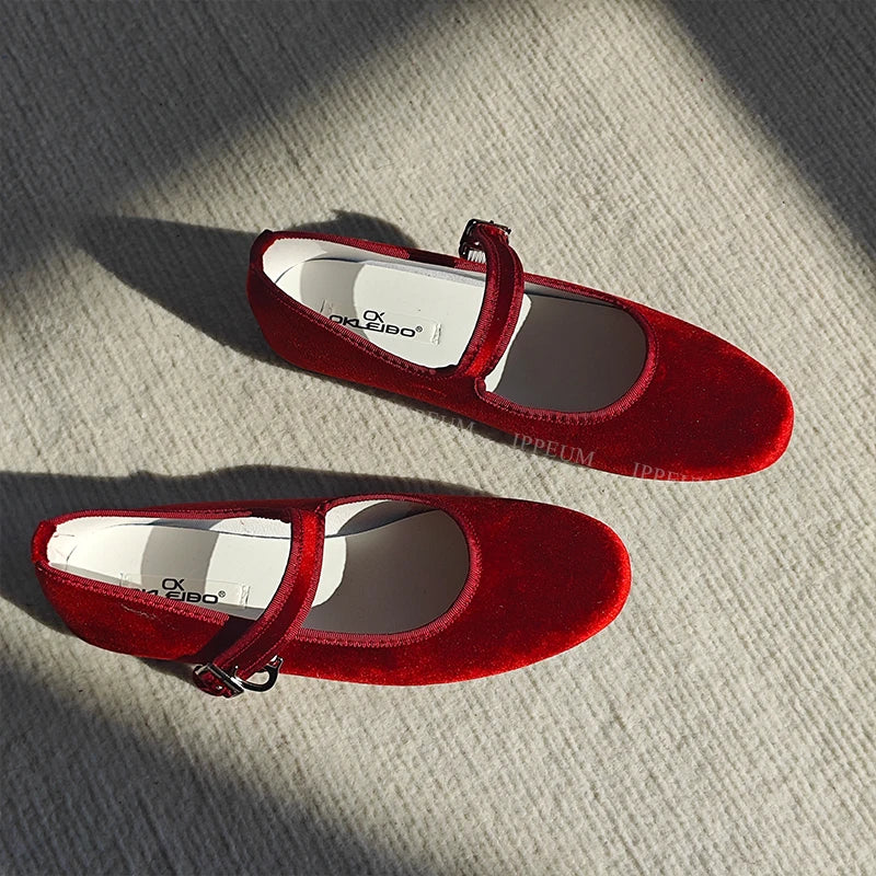 Descubre la elegancia y el encanto clásico de las IPPEUM Red Velvet Ballet Flats, unas bailarinas diseñadas para resaltar tu estilo con un toque de sofisticación. Fabricadas en terciopelo rojo suave y elegante, estas Mary Janes combinan comodidad y moda en cada paso.
