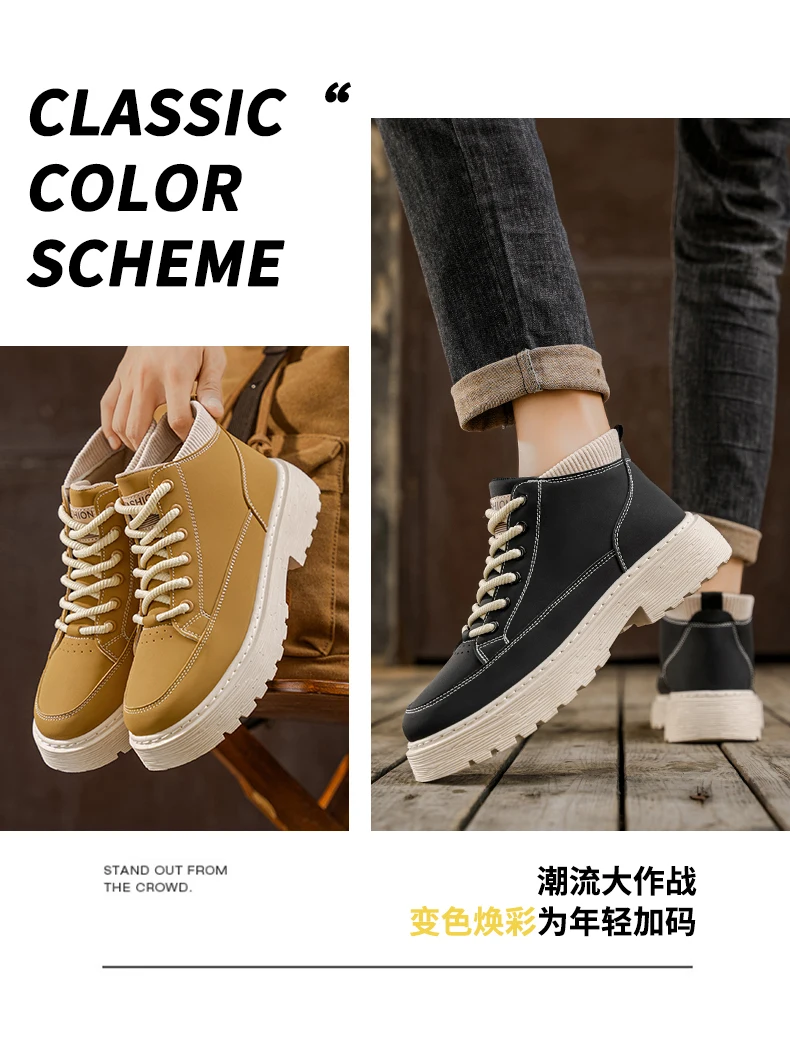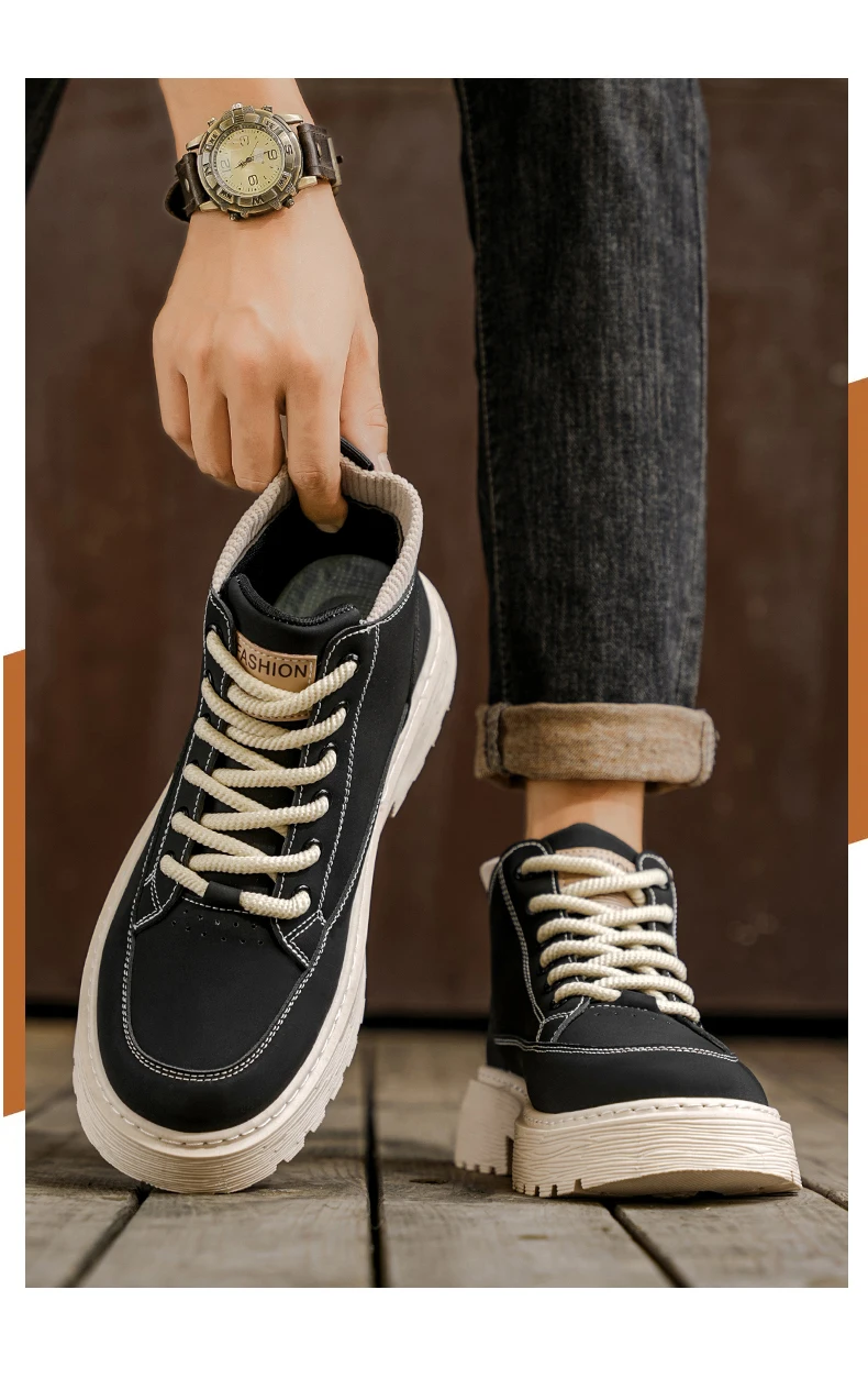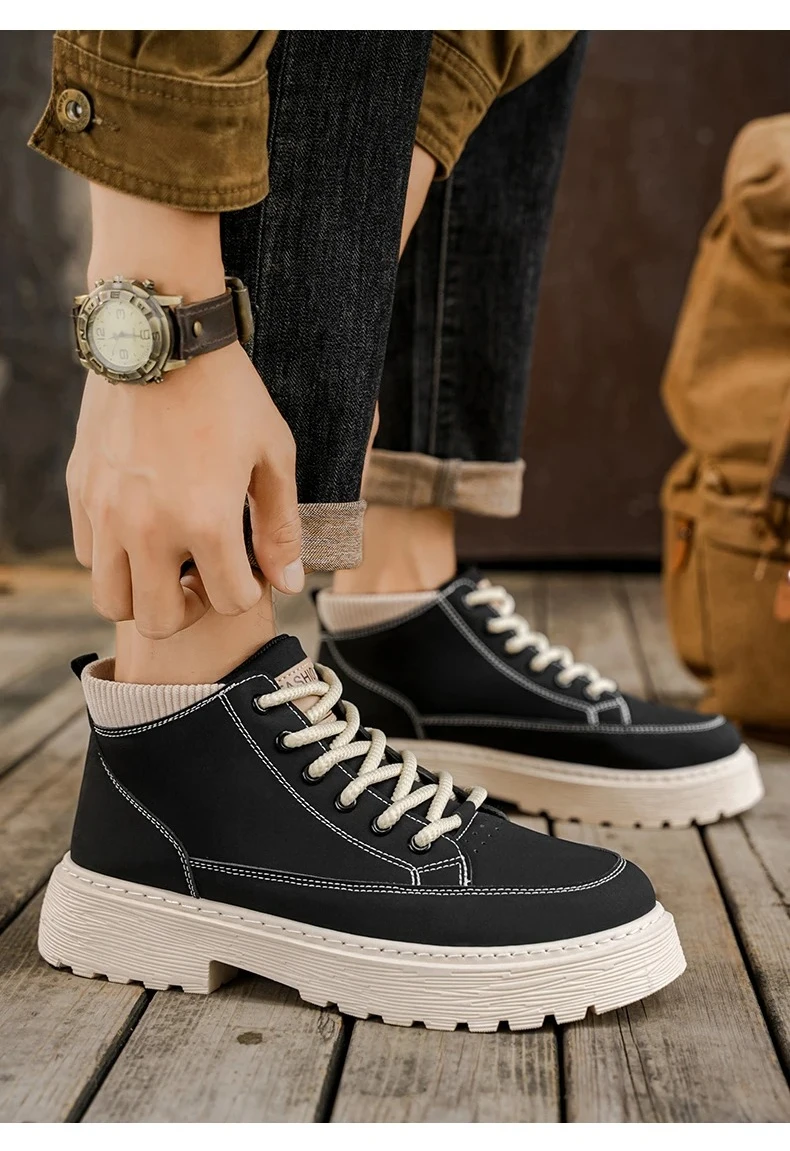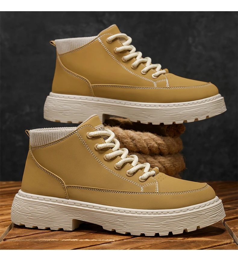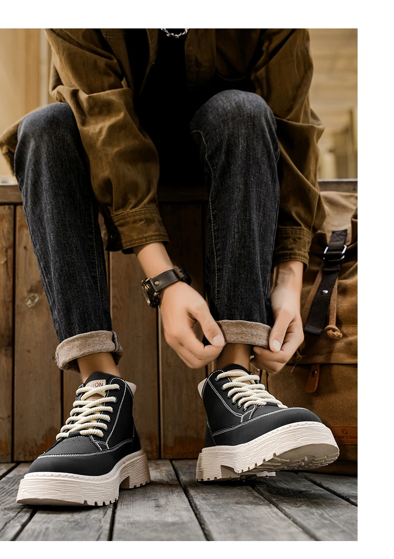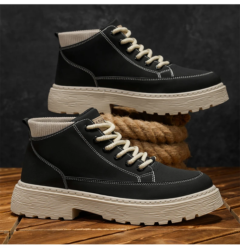Descubre la combinación perfecta de estilo, comodidad y durabilidad con nuestras botas para hombre. Confeccionadas en cuero de alta calidad, estas botas de tobillo tipo casual y deportivo ofrecen un ajuste seguro gracias a su sistema de cordones. Ideales para cualquier ocasión, desde trabajo hasta salidas informales, su plataforma resistente y su diseño moderno de corte alto garantizan tanto soporte como estilo. Eleva tu look diario con estas botas masculinas versátiles y elegantes.