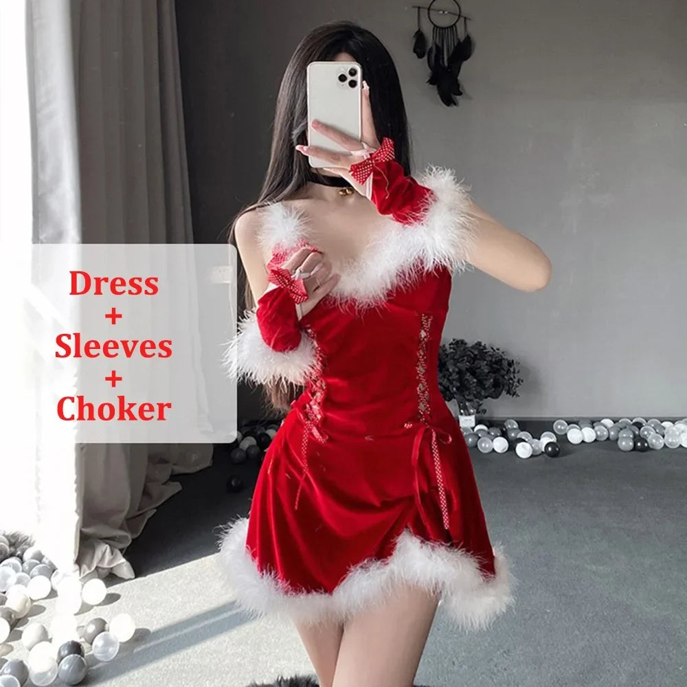 Nueva moda vestido de Navidad de terciopelo rojo disfraz Favor Navidad abrigo de Papá Noel fiesta de carnaval traje de Cosplay fiesta de vacaciones