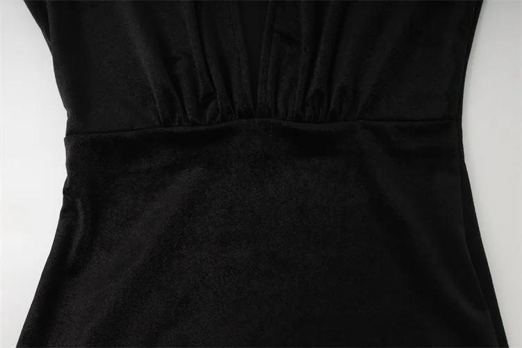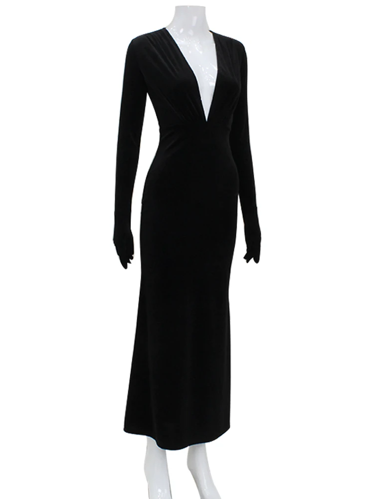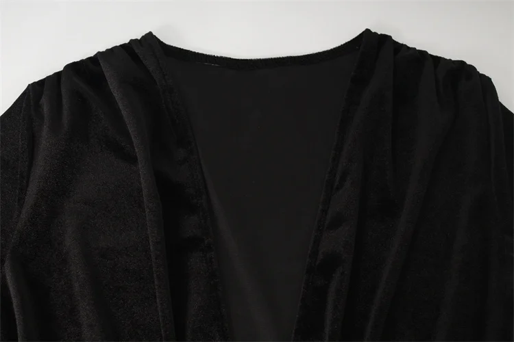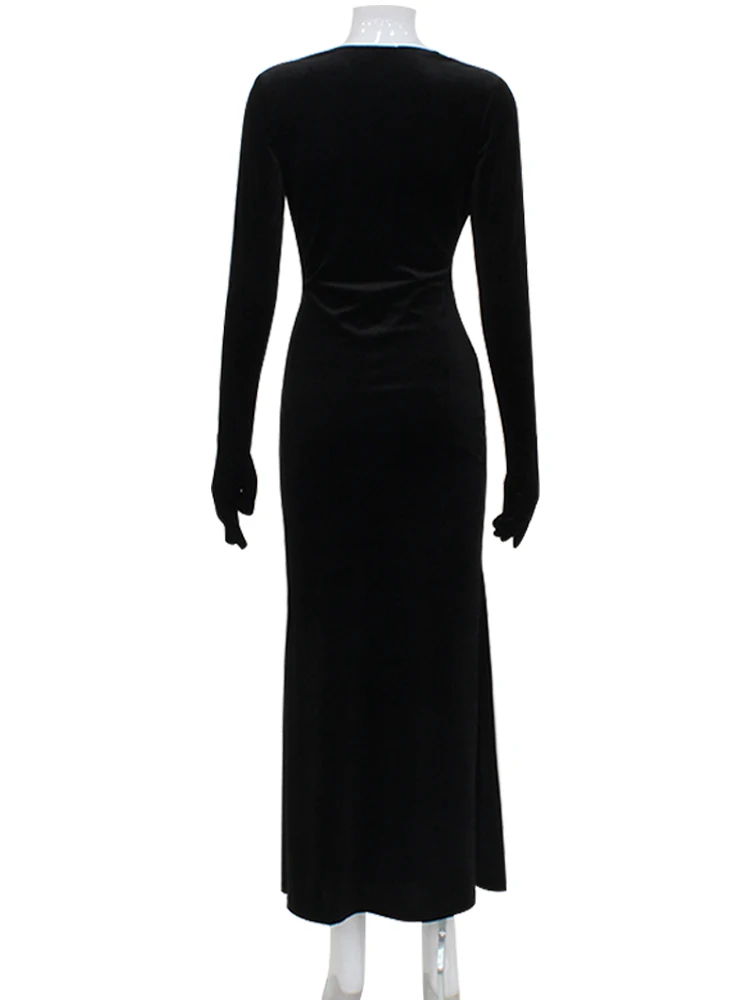 Vestidos de terciopelo de fiesta para mujer, moda Sexy, sólido, mangas completas, guantes, cuello en V, envoltura de cadera, Vestidos largos, batas femeninas elegantes