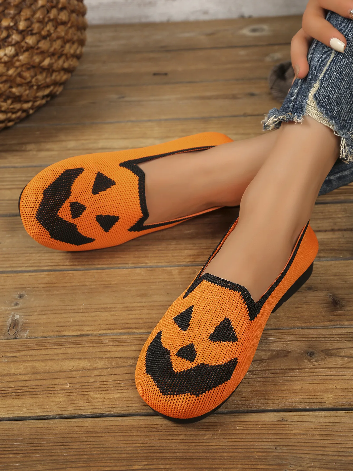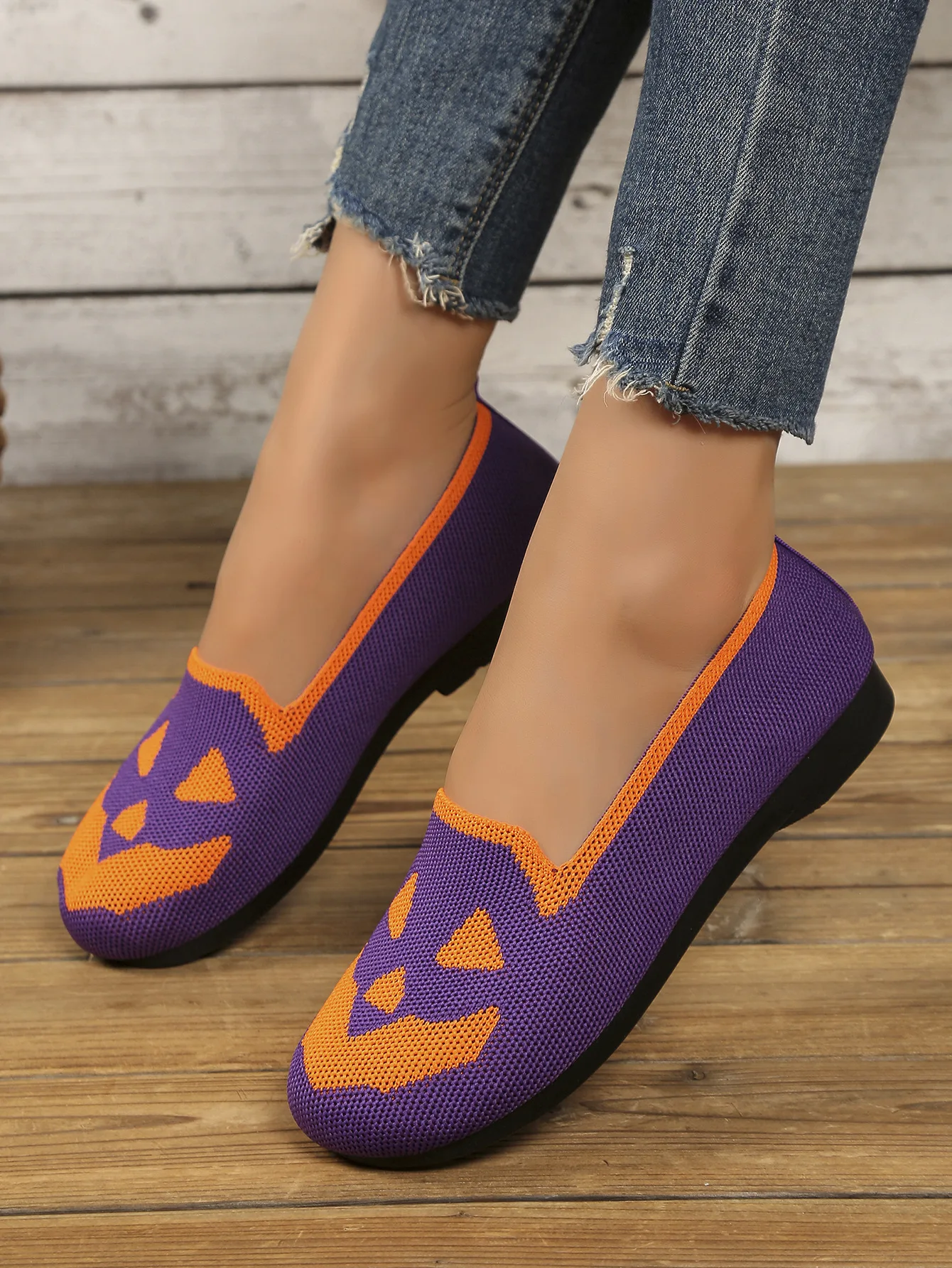 Women's Halloween Pumpkin Print Breathable Slip-On Flats