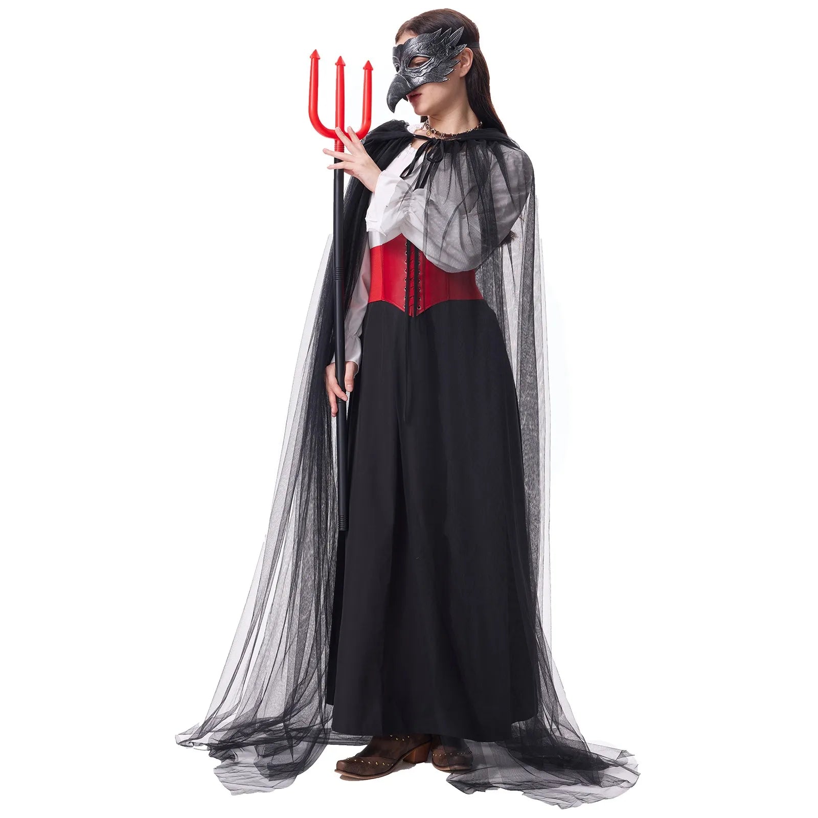 Conjunto de cosplay retro que incluye vestido con cintura marcada y accesorios a juego. Perfecto para fiestas temáticas, Halloween o eventos de disfraces. Estilo audaz y elegante que combina misterio y un toque travieso de diablesa.